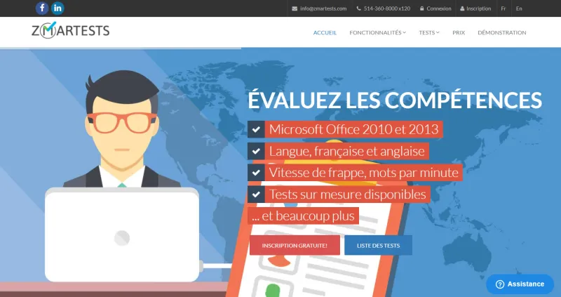 The Zmartests solution is 100% web, for both test administrators and test-takers. Customers can subscribe and purchase a test package directly online on our website. A customer area is created and can be personalized with the employer's brand image (logo, slogan, etc.) Zmartests standard tests, configured to measure all levels of skills, are automatically made available to the new customer, but we can also work with our customers to configure tests that are customized to their needs for different types of positions to fill. Testing can be done in our clients' offices or remotely by sending an email invitation and using the validation test to ensure that the candidate has not received any help. As soon as a test is completed, the results are automatically available online or by email if the automatic notification option is activated.