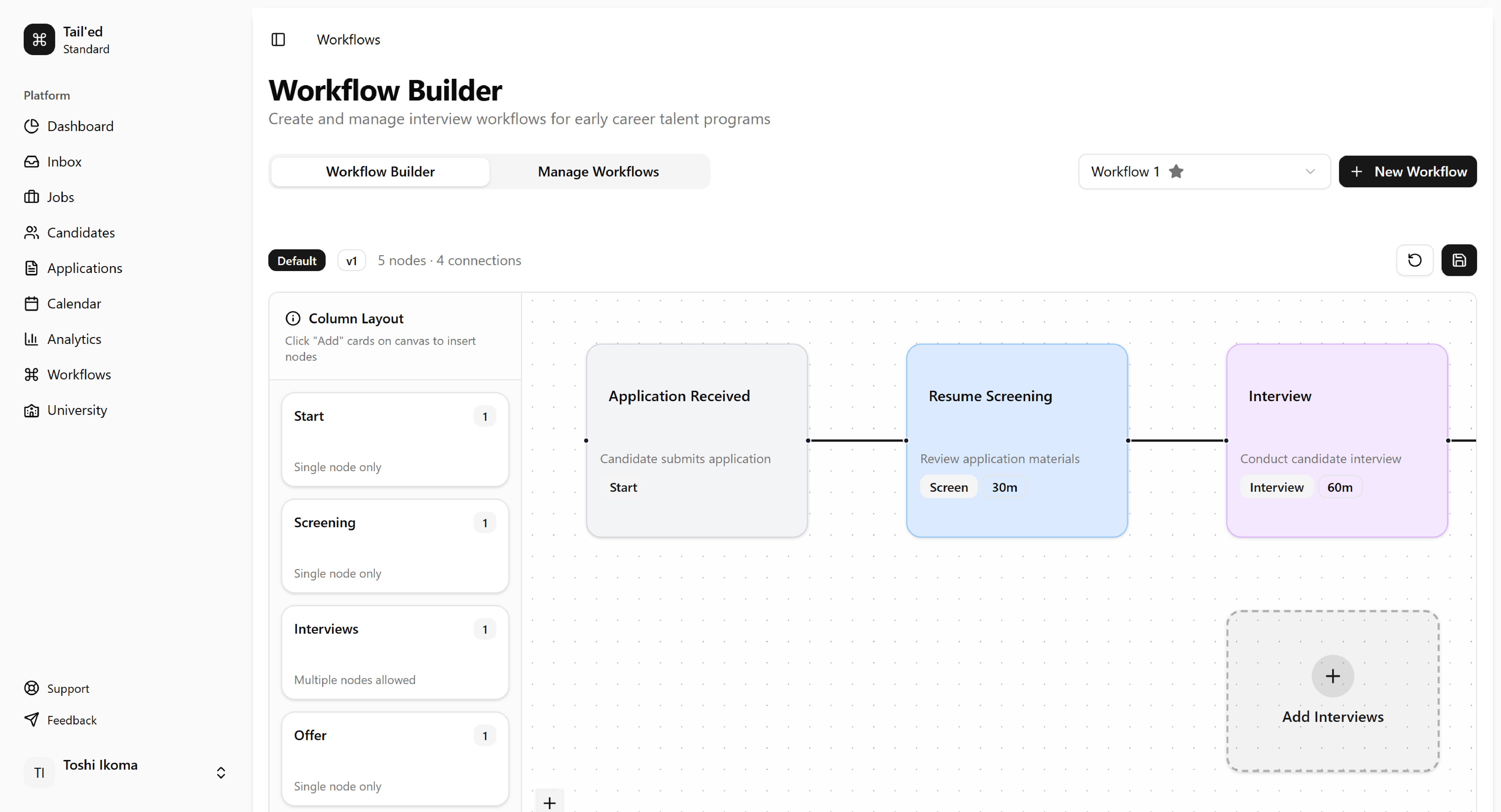 Enfin, Tail’ed permet de suivre facilement la performance des programmes grâce à des indicateurs clairs : volume de candidatures, délais de recrutement, efficacité de l’équipe, satisfaction des candidats.